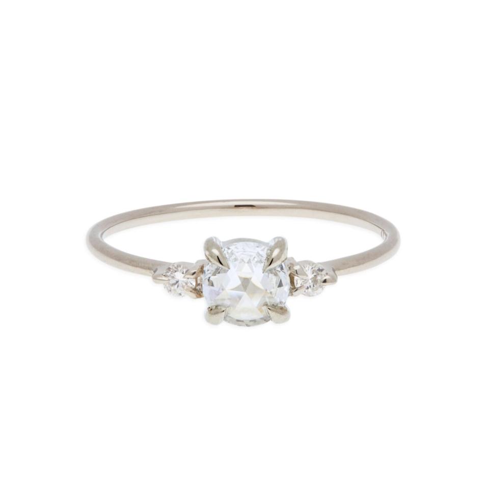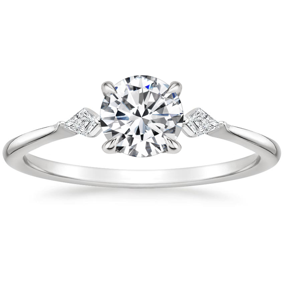 Brilliant Earth was one of the first jewelers to provide traceability of a diamond’s origin and ownership, and they are also a certified member of the Responsible Jewelry Council. Rather than discount their rings, the San Francisco-based brand is offering a pair of free diamond earrings with purchases of $1,000 or more. This three-stone ring, featuring two kite-shaped diamonds, is a very chic choice.