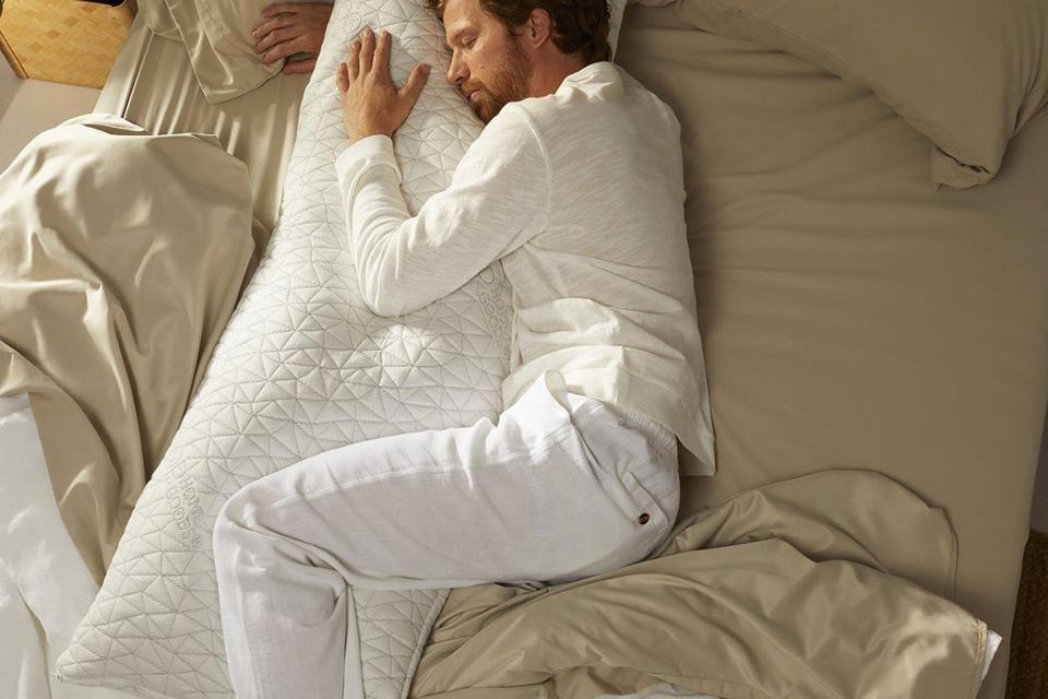 According to a 2013 study from the National Library of Medicine, hugging decreases cortisol levels, which can help calm you from stress and anxiety. Body pillows are great for this; hugging one to sleep is like having someone to snuggle with—without the snores and body heat. Aside from being cozy, body pillows are also designed to alleviate joint pressure. According to research conducted by the University of Rochester, if you sleep on your side, a firm pillow between your legs and knees will help keep your spine aligned and reduce pressure on your hips. And anecdotal evidence suggests they can help reduce pain and soreness associated with a variety of conditions, including pregnancy, injury, and health issues like sciatica and back pain.