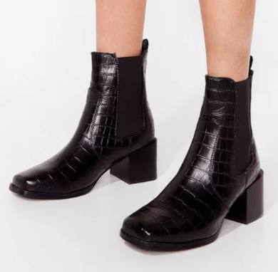 Croc Square Toe Heeled Ankle Boots