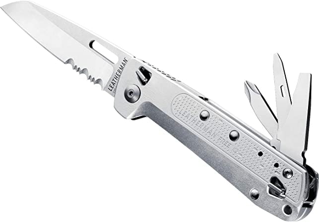 Leatherman makes some of the best camping knives on the market, and this K2 multi-tool is no exception. Like the other options on this list, it boasts an ultra-sharp stainless steel blade that's resistant to rust and a sturdy aluminum handle. The magnetic locking system is strong and reliable, while the tools themselves are easy to use, according to reviewers. On top of the sharp camp knife, it contains an awl, a bottle opener, a package opener, a pry tool, and three screwdrivers. Plus, it's available in five different colors ranging from silver to crimson.