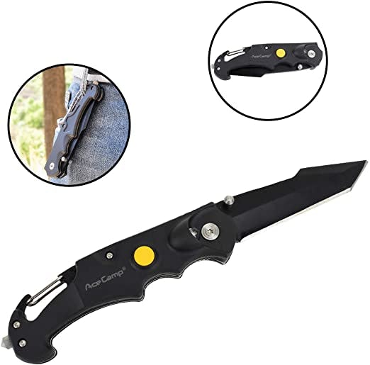 Designed specifically for emergency scenarios, this lightweight camping knife comes with special tools built in for survival situations. In addition to its sharp stainless steel blade, it's equipped with a glass breaker and a rechargeable LED flashlight. The wallet-friendly option is ultra-compact and customers noted that the blade locks into place well. It conveniently hangs from a sturdy buckle clip, and it comes with a mini-USB cord to recharge the flashlight.