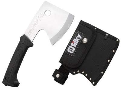 One reviewer says: "Wow. Incredible Japanese steel, comfortable handle, no risk of breaking the head off, this is the ultimate packable camping hatchet. [...] I love the low pack profile and weight. This isn't old school looking, but it is heirloom quality, and I appreciate innovative, tasteful design."
