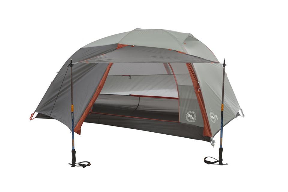 Essentially it’s a two-pole dome tent with one door and a single vestibule. Just assemble the aluminum tent poles, snap them into the color-coded corners, hoist up the body and clip it to the poles, then throw on a rainfly if you like. Although it may be a bit tight for four, it’s certainly roomy for two adventurers towing decent sized bags.
