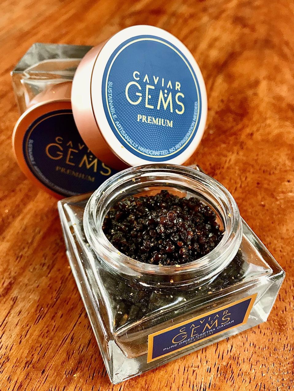 Caviar Gems’ Co-Founder Polina Steier, whose love for caviar inspired her to launch a magazine called Caviar Affair, developed the product with Narayanan Iyer, a former colleague from her days at Tsar Nicoulai Caviar. “We realized there was a white space in the industry,” says Steier. The two leveraged their industry connections to source premium sustainable Osetra caviar exclusively from ethical fisherman, then they set about to master the process of dehydrating it. “We reimagined caviar but stayed true to its heritage and taste,” says Steier. “We are not here to replace fresh caviar but it was our goal to make the extraordinary accessible. We want people to play with it and we want to reach the consumers who rarely get a chance to experience caviar.”