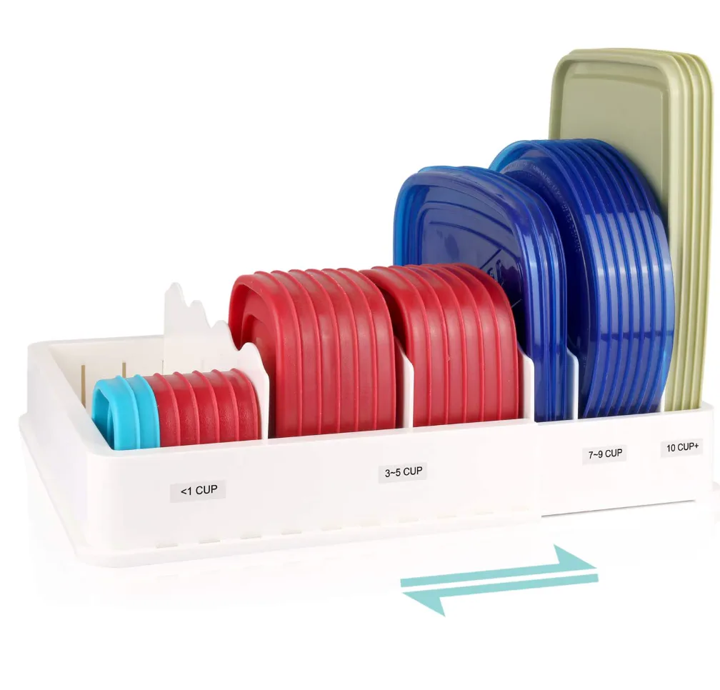 Every kitchen has at least one cabinet that’s devolved into a mess of plasticware lids, so why not give them a home inside of this organizer? It expands from 10 out to 17 inches, making it easy to fit inside cabinets of nearly any size — and the low profile means you can even place it inside drawers if you like. Plus, the dividers in the center can be adjusted as needed.