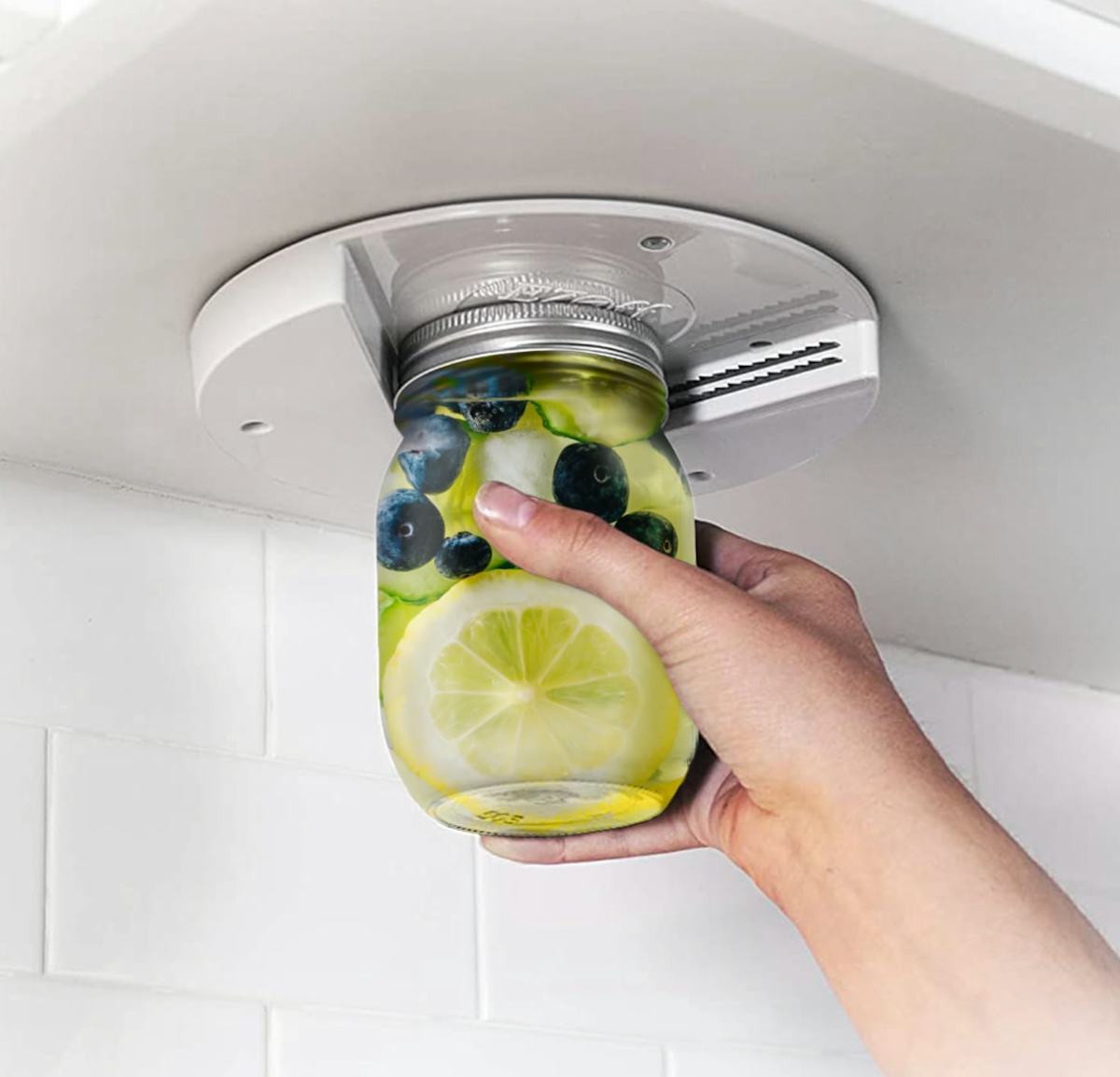 A jar opener that installs under your kitchen cabinets