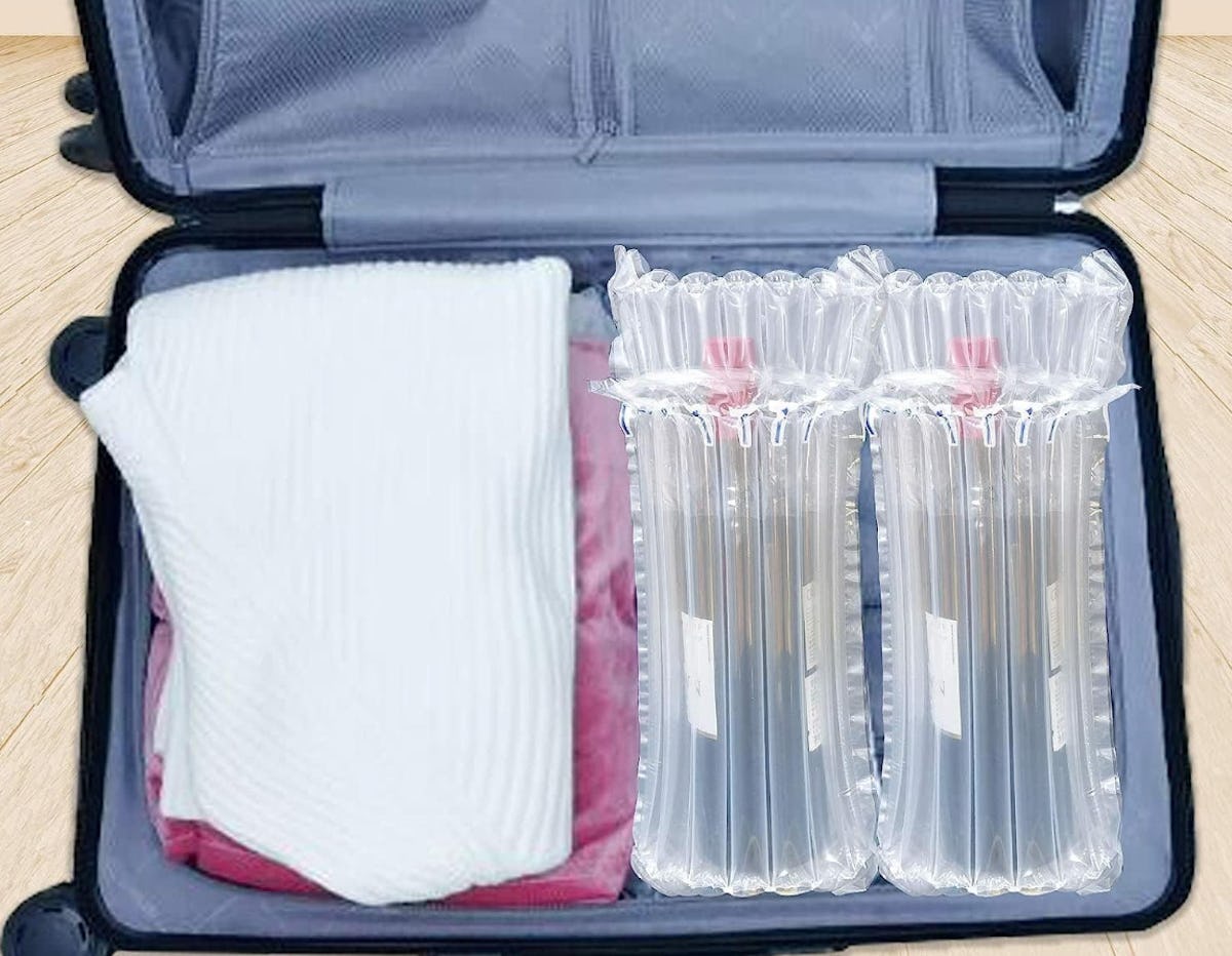 Inflatable pouches that can protect wine bottles while traveling