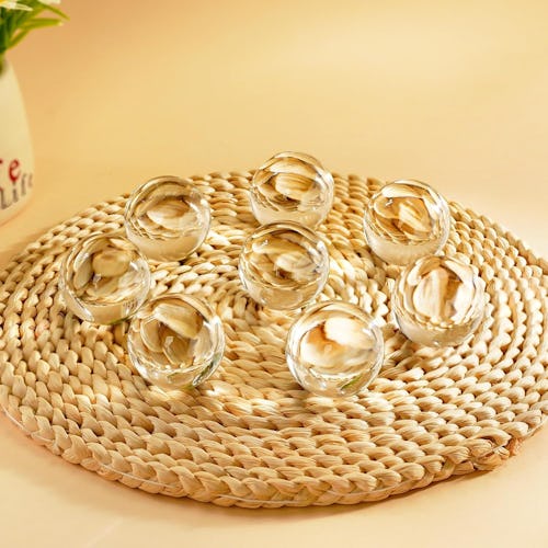 These crystal glass balls are a pretty decorative element that can be used so many different ways. Durable and light-reflective, these look great in a vase, on a tray on your table as a centerpiece, or even in the bottom of a little bowl. The transparent ones are very versatile, but they also sell colorful options that add a pops of color to your decor.