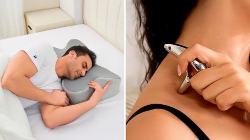 With a unique flower-like shape, this ergonomic neck pillow is meant to help prevent and minimize neck and shoulder discomfort when lounging or sleeping. The memory foam and contoured design allows the pillow to adapt to your head and neck, the height is adjustable so it can even be used for side sleepers, and the moisture-wicking case has a cooling feel – plus, it can be removed for easy cleaning.