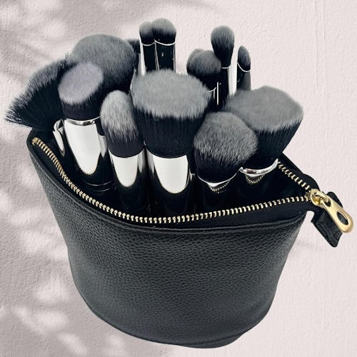 Traveling with a collection of makeup brushes can be a pain, but this cosmetics bag helps make things easier. The size and shape is ideal for makeup brushes of all sizes and allows you to store them standing up – this helps preserve the bristles, and prevents them from getting other items or bags messy. It can also be used as a self-standing brush holder at home.
