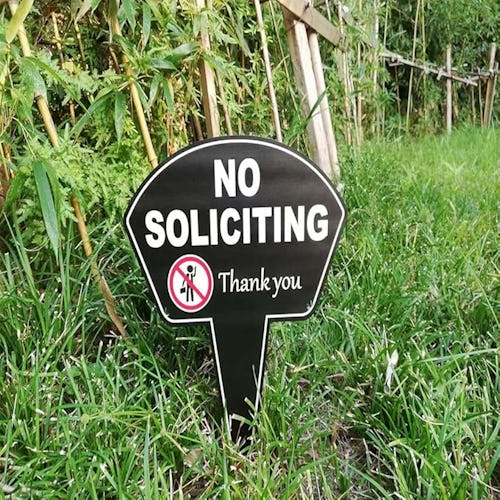 Amazon -If you would rather not answer the door for solicitors and salespeople, put up a straightforward warning with this yard sign. Pop it into the grass near your front door and it makes things quite clear: You’re not interested in talking to any solicitors. It’s direct, to the point, and doesn’t require a rude encounter.