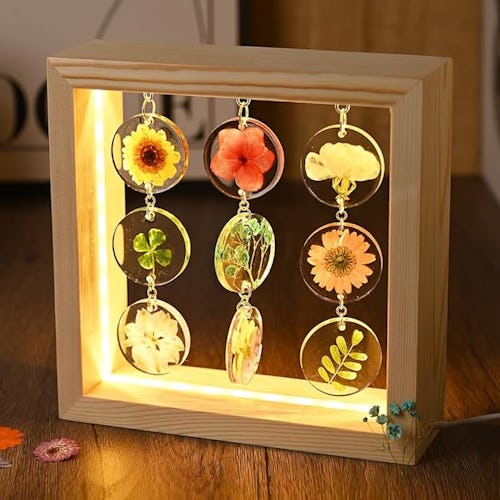 This unique flower lamp definitely catches the eye. It features a collection of real dried and pressed flowers that seem to glow from within when the lamp is on. It features three adjustable brightnesses in a chic pine wood frame, and makes any room feel more welcoming in addition to being a stunning centerpiece.