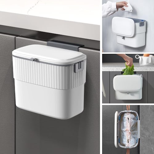 This hanging trash can is an ideal addition to a small kitchen space (or any kitchen, for that matter). A hanging clip makes it easy to move from cabinet to cabinet, or you can use the adhesive strip to permanently mount it. The lid is secure and helps keep odors inside, but opens smoothly for wide access. It can be used as a mini trash can or even as a compost bin.