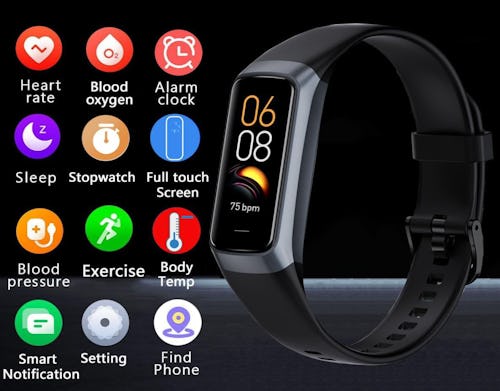 This fitness tracker is less than half the price of other options and tracks your vitals (heart rate, blood pressure, etc.) in real time, while also tracking sleep and monitoring your temperature. There are 25 different sports modes to choose from, and it counts steps and can be connected to your phone to give you notifications. On top of that, it’s slim, easy to wear, and waterproof.