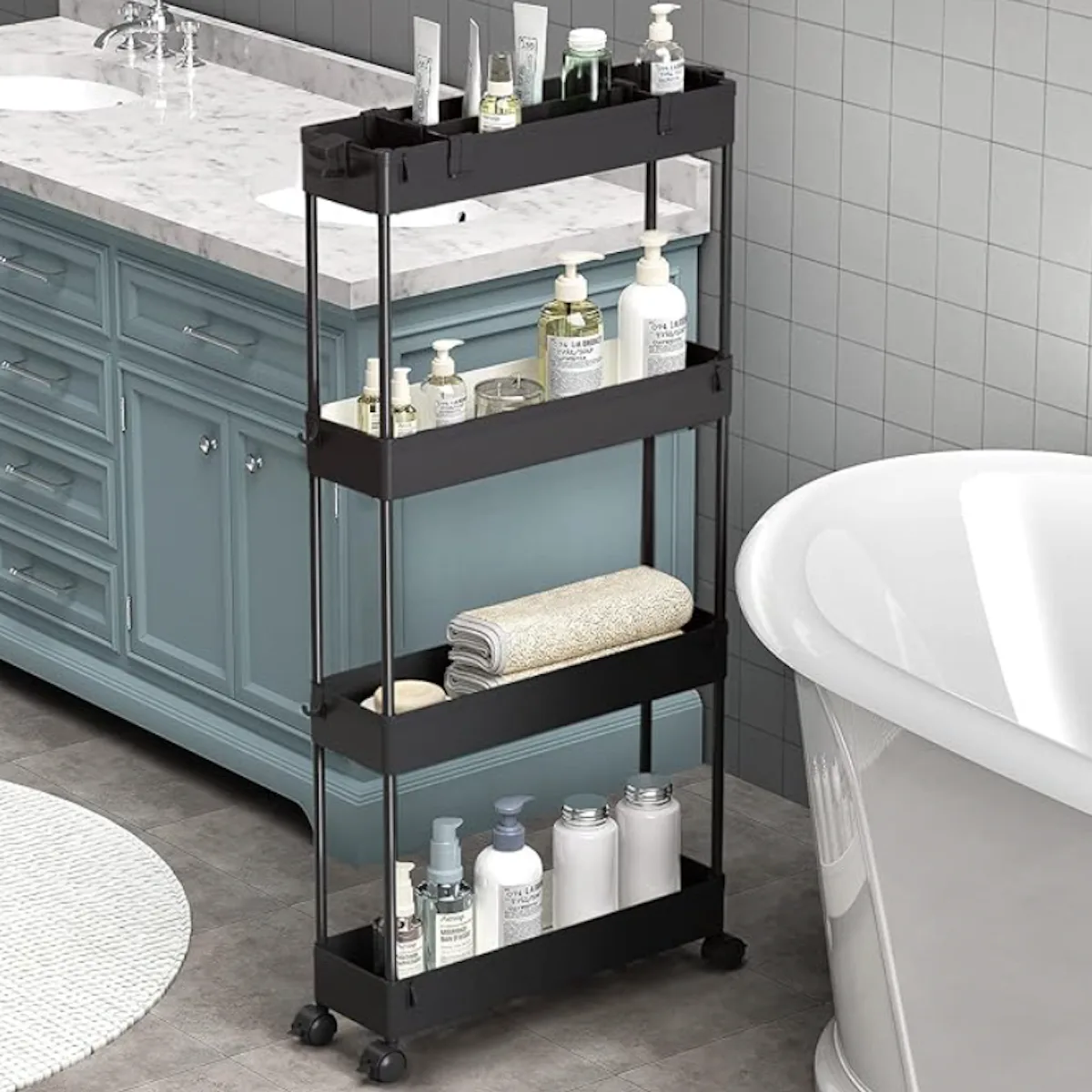 Make the most of those awkward, narrow spaces with this slim rolling storage cart. Measuring just 4.9 inches wide, it slides easily between even those tiny gaps between furniture or appliances to create instantly more storage space. Available in five colors to suit your decor, it even has lockable wheels that let you roll it and secure it wherever you need it.