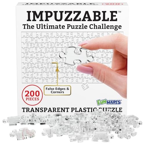 ImPuzzable Insanely Impossible Puzzle: 100, 200, or 500 Piece Clear Jigsaw Puzzle is Clearly The Hardest Most Difficult Puzzle for Puzzle Lovers or a Funny White Elephant Gift! (200 Piece)