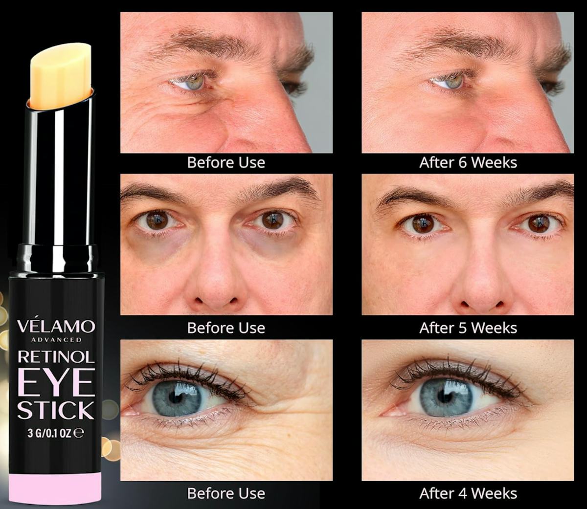 This retinol eye cream stick infused with caffeine for bright, hydrated skin
