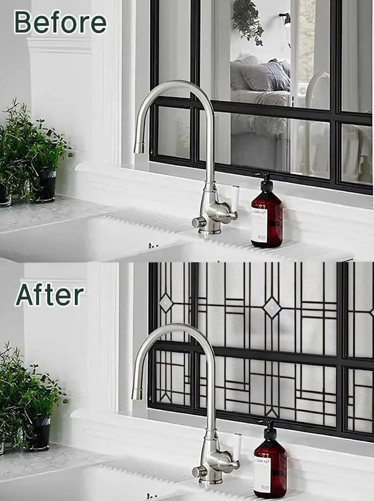 Refresh any plain glass windows or doors in your home with this decorative stained-glass style window film, available in eight chic prints. Designed with a static-cling backing instead of adhesive, it applies easily with just water and can be repositioned or removed without leaving residue behind. The film also helps block UV rays, which can reduce glare and help protect furniture from fading.