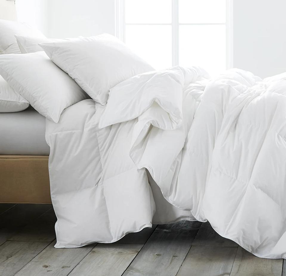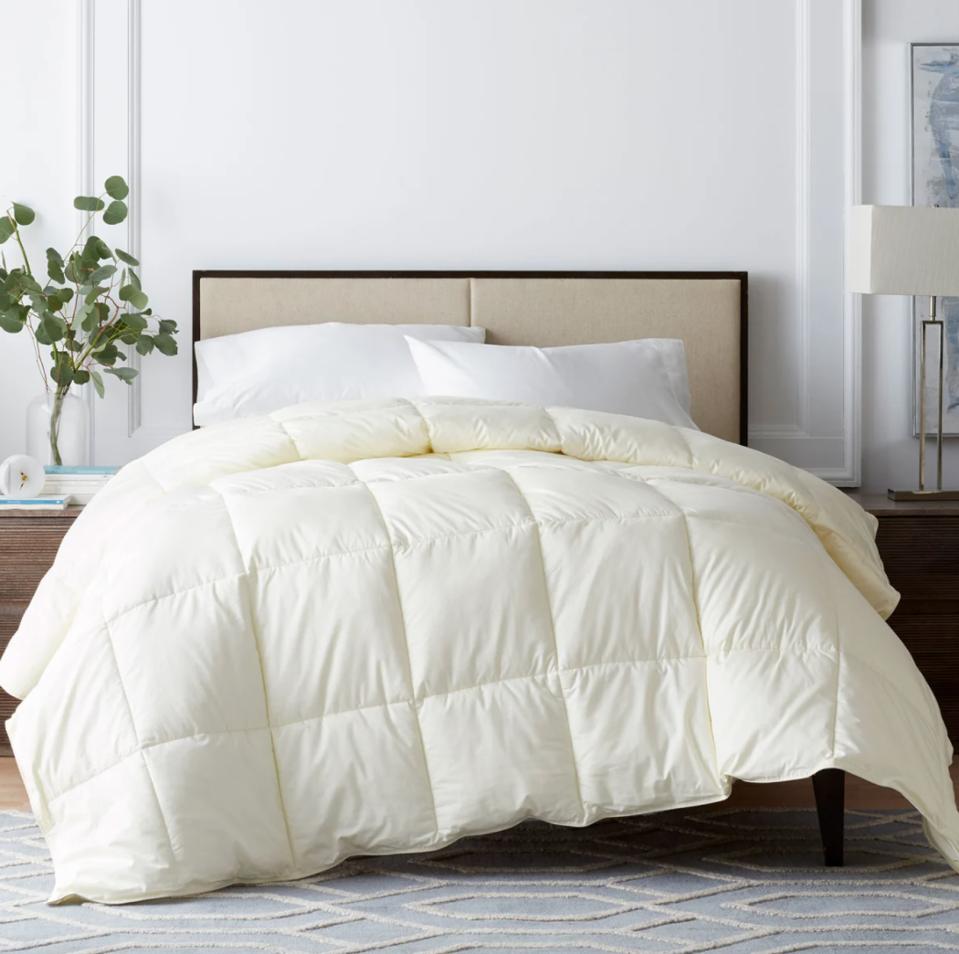 This Utopia Bedding comforter is one of the most popular down alternative comforters on Amazon, and at a retail price of around $30, it’s an absolute steal. Not only is it ultra-plush, the box-stitch design prevents the fill from shifting so you can stay comfortable all night long without having to constantly readjust. Plus, its corner loops keep the insert properly secured in your duvet cover.