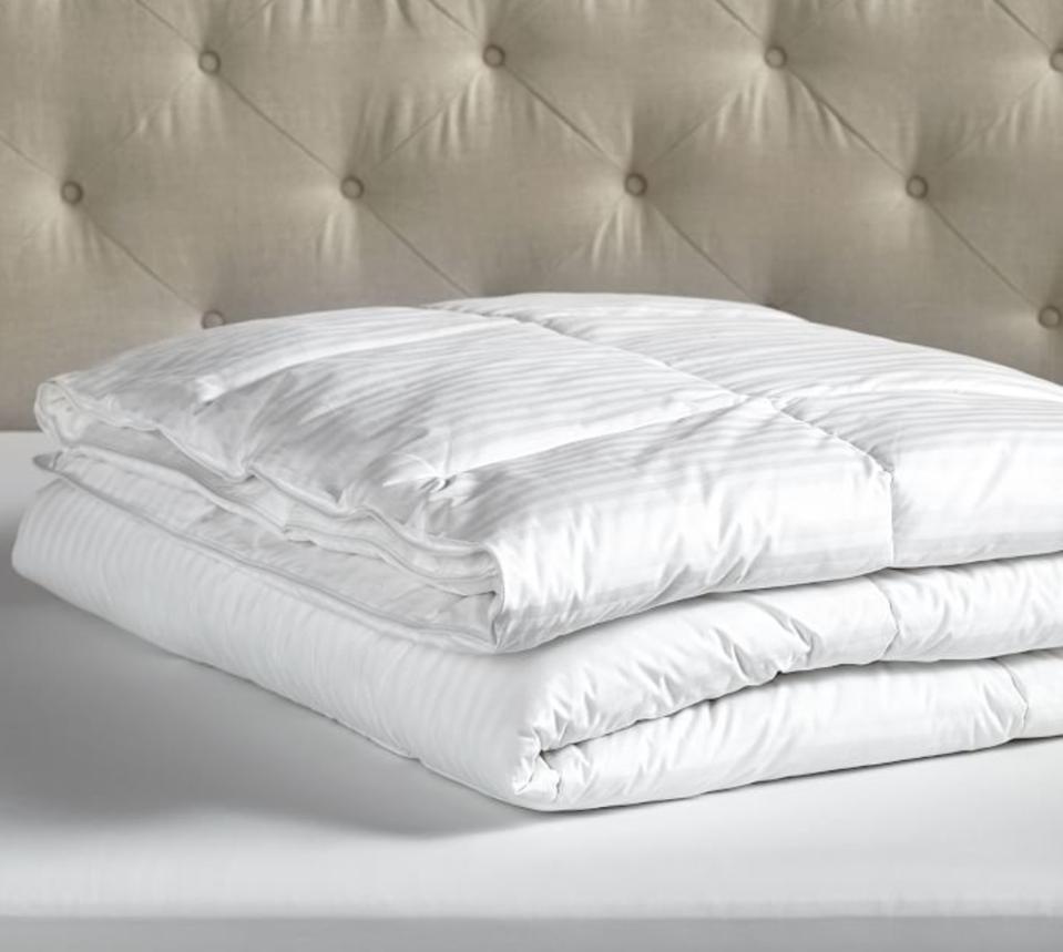 If you’re used to waking up drenched, this lofty duvet from Pottery Barn will keep you dry as a bone. Made with HydroCool, Pottery Barn’s trademarked fill, the duvet insert’s down-alternative has moisture-wicking fibers for those that need a little help cooling down. It's also slightly oversized, so it feels fuller and has more loft than similar down alternative comforters. And it’s elegant enough that you can skip the duvet cover all together, if desired.