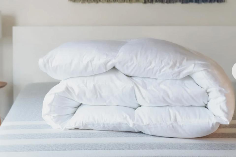 This alternative down comforter from Casper keeps you warm yet comfortably cool, thanks to its breathable Tencel shell that regulates temperature without trapping heat. It’s so soft and fluffy that it closely mimics actual down, but instead of feathers, it’s made with polyester from recycled water bottles. If you prefer a lightweight comforter, Casper gives you that option too.