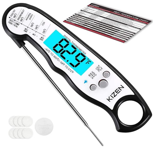 This digital meat thermometer can accurately measure the temperature of food in just three seconds. If that wasn't impressive enough, this useful kitchen gadget has a large backlit screen for easy reading, a hanging hole and magnet for storage, and a temperature chart on the handle so you can stop Googling "temperature of medium-rare steak."