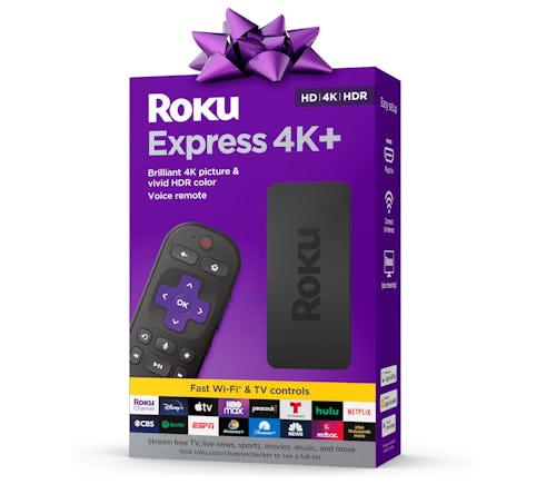 The Roku Express 4K+ allows you to stream in HD, 4K, and HDR. The included remote is an all-in-one model that can be used to turn your TV off and on, control the volume, and navigate your streaming choices. It even works with voice assistants like Alex and Siri. Roku comes with a large library of free streaming and live channels as well.
