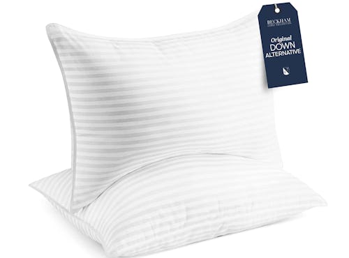 After more than 230,000 reviews, these pillows have earned their place as an Amazon best-seller — and for good reason. These are made with a cotton cover with a thread count of 250, and they're filled with soft down alternative that's suitable for all types of sleepers. Snag them on sale while you can.