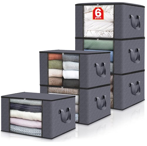 These extra-large blanket storage bags are made of a breathable, non-woven fabric, so you don't have to worry about your extra bedding or winter sweaters getting dusty or moist when they're in storage. Unlike other storage bags, these hold a lot — up to one chunky comforter, three blankets, or 25 pieces of clothing — and you'll be able to see what's inside with the clear storage window.