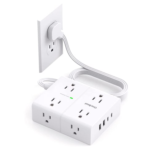 This surge protector and outlet extender can turn one single outlet into three, and is built with ports for two standard USB cords and one USB-C cord. At 5 feet in length, this works as an extension cord also. And with a power button that works as both a power switch and an overload switch, this is super easy to use. This has a glowing, 4.8-star overall rating on Amazon after nearly 3,000 reviews.