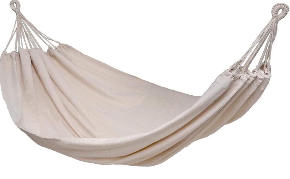Beyond shape and style, you’ll also have a variety of fabric options. Camping enthusiasts will most likely gravitate toward nylon while those who care more about utilizing their hammock as decor may opt for cotton or canvas. Below, here are 13 of the best hammocks for different needs, wants and uses, according to online reviewers. You’ll also find helpful details like fabric, weight capacity and more to help in your search.
