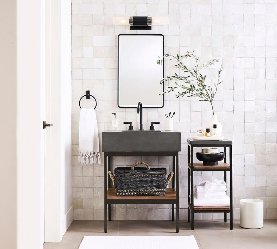 Seeking a modern bathroom mirror, but short on storage? Look no further than this best-selling Pottery Barn mirror, which also serves as a recessed medicine cabinet for hiding your medications and toiletries. The cabinet has adjustable, glass shelves so you can easily fit taller items, and it can be mounted to open on either the left or right side. Choose from six finishes to blend the mirror with your aesthetic. Note: This bathroom mirror doesn’t come with installation materials, so you may need to hire a professional when you’re upgrading your bathroom.