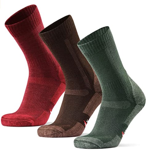 One reviewer wrote: “Great quality hiking socks! I was hesitant at first to buy wool socks for summer hiking, but these are very nice and breathable. No problems with sweaty feet while wearing them. They are well-constructed and have stood up to many miles of hiking so far. These will be all-year hiking socks for me!”