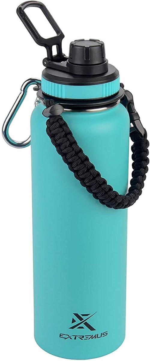 This isn’t your average water bottle — Extremus’ bottle is constructed from triple-insulated stainless steel that keeps your water cold for up to 24 hours (or hot beverages warm for up to 12). The wide-mouth cap makes refilling and cleaning a breeze, while the smaller drinking nozzle cap remains tethered to the top, so there’s no chance of you losing it. It comes with a paracord handle and carabiner, so you can sling it over your wrist or hook it to your backpack for hands-free carrying. The condensation-resistant bottle is available in solid colors and cool patterns, in 32-ounce and 40-ounce sizes. (Note that only the solid-colored bottles are dishwasher-safe.)
