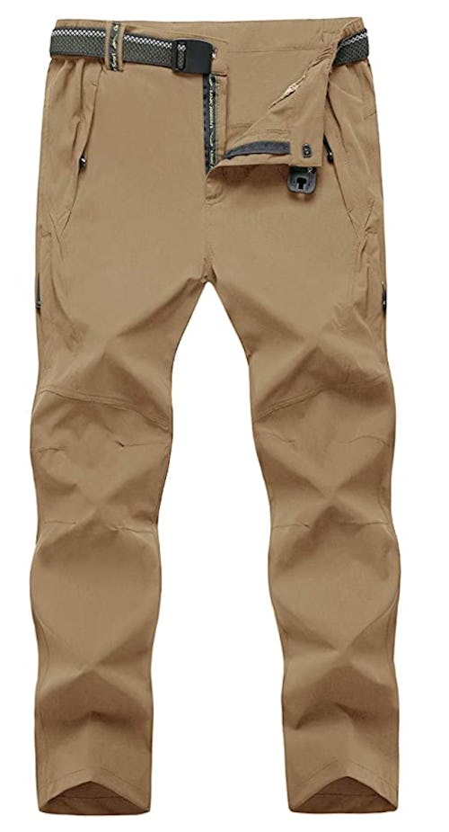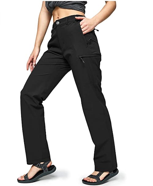 These water-repellent tactical hiking pants are quick-drying and abrasion-resistant, which means they’ll stand up to inclement weather as well as scrapes and scratches from rocks or brush. The lightweight, straight-leg pants feature a partial elastic waistband with belt loops for a comfortable fit, along with four-way stretch for lots of mobility. They have six zippered pockets, so you can keep small essentials like lip balm and a granola bar on hand.