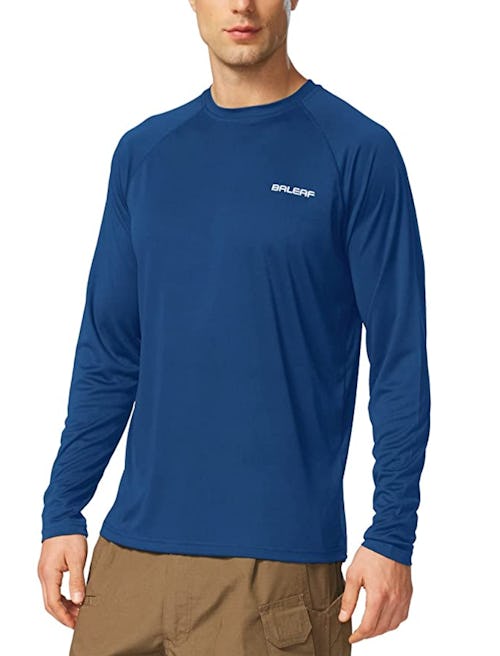 The best hiking clothes can shield you from the sun, like this UV-protective long-sleeve shirt. Boasting a 4.7-star overall rating, this UPF 50+ shirt offers excellent protection from both UVA and UVB rays, and the polyester fabric wicks away moisture and sweat, keeping you dry while you move. The crew-neck shirt has a slightly relaxed fit and flat-lock seams that prevent chafing and discomfort. It comes in several different colors, from dark neutrals to high-visibility shades.