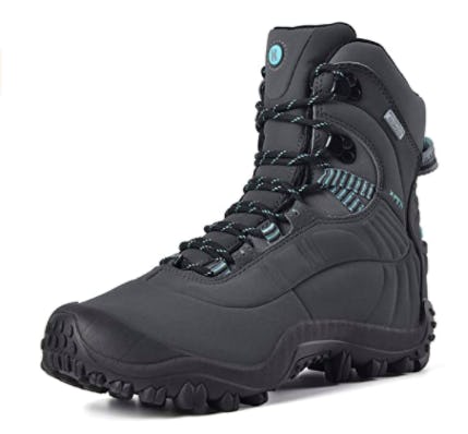 The Manfen Hiking Boot is made with a waterproof mesh upper and a trademarked: HydroShield membrane, so you can trek through rain, puddles, and even rivers and still stay dry. Thinsulate insulation makes these boots safe to wear in temperatures as low as -22 degrees Fahrenheit, and with the added snowshoe strap, these are a dependable choice for cold-weather hiking boots.