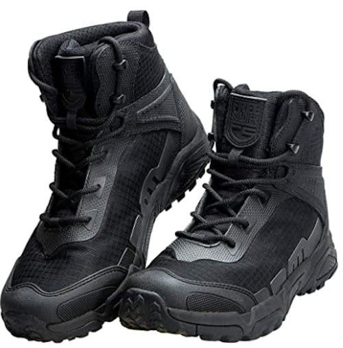 The Free Soldier Tactical Boot is a lightweight hiking boot with military-style details. These all-terrain boots are made from anti-puncture plastic fabric and highly durable thermoplastic polyurethane. In addition to being light, they're also flexible, so you can easily pack them in a backpack or suitcase for travel.