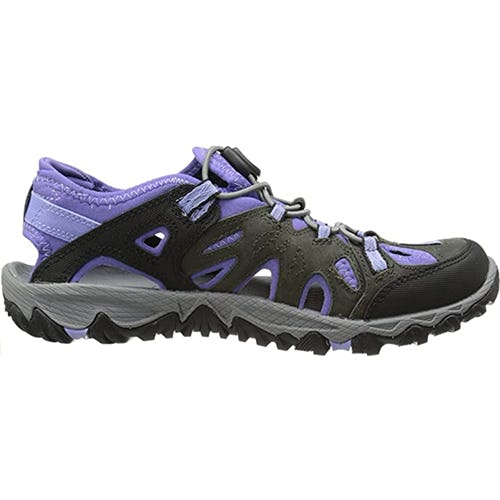 Snug yet flexible bungee laces plus comprehensive foot protection make for one beefy pair of hiking sandals. The waterproof lug sole has a tire-like tread that's topped with a molded foam insole (with an anti-odor treatment) for extra cushioning. The caged upper is made of sturdy polyester with a moisture-wicking lining to ensure that the parts closest to your skin dry first. Additionally, a handy heel tab makes pulling the shoes on a bit easier.