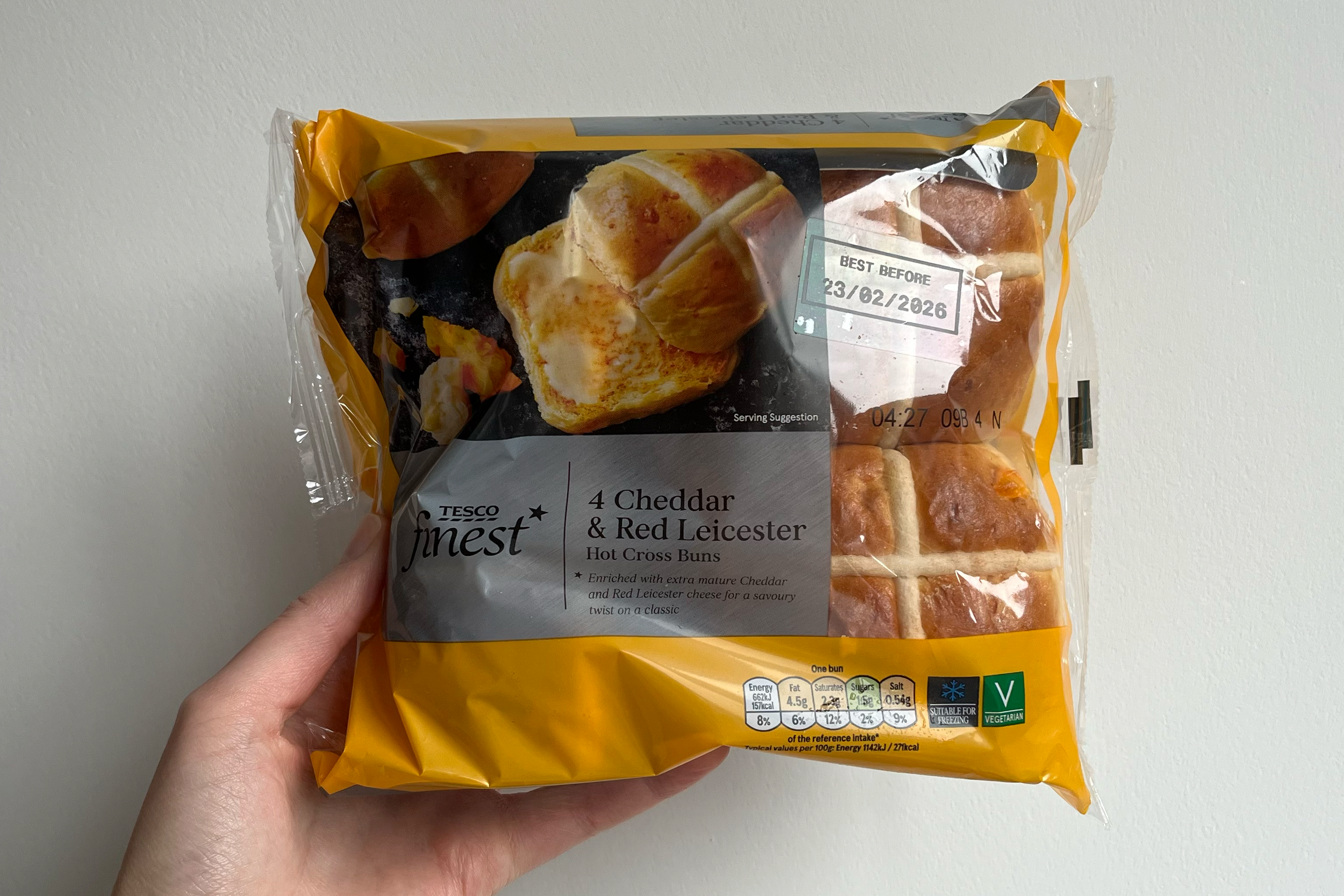 Tesco finest Cheddar and Red Leicester hot cross buns