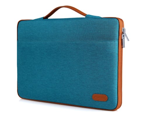 This case is simple but will provide a laptop with the protection it needs to stay safe from light drops and everyday bumps. It’s slim enough to slide into a backpack or briefcase, or you can carry it as-is with its sturdy handle. There’s also a small extra pocket in front for charging accessories. This case comes in various sizes to fit most laptops.