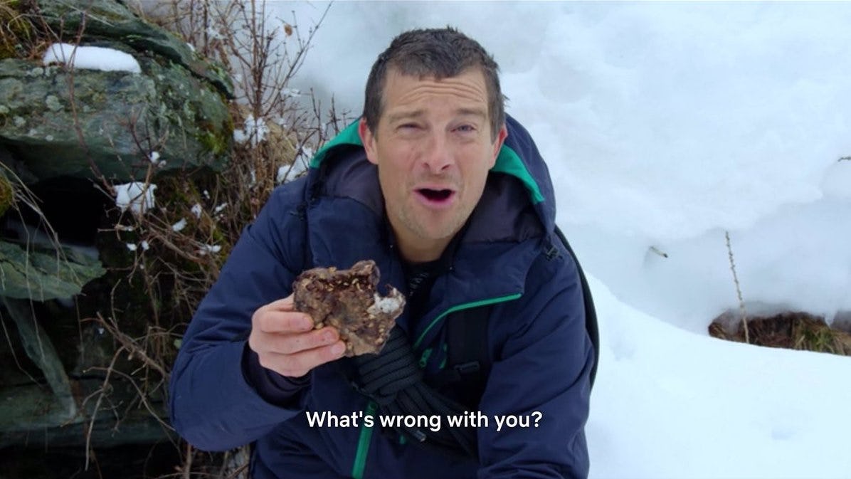 The next big ticket interactive special was You vs. Wild, a Bear Grylls survivor show intended to ask viewers "Could YOU survive in the wilderness?" but it seemed to be interpreted as "How many ways can YOU kill Bear Grylls?" Viewers could force Bear to jump across ice chasms, confront a crocodile, and, in one frankly irresistible choice, eat animal droppings. It was a fun way to while away an afternoon, but it wasn't the future of television.