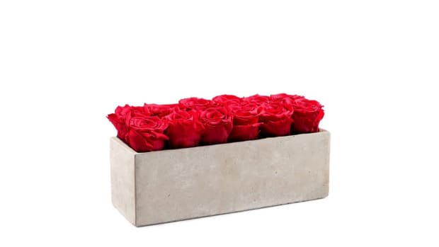 This centerpiece is a modern, industrial take on classic Valentine’s Day bouquets. 12 fresh, long-lasting roses are paired with a high-quality cement vase that is perfect for your next dinner party. With over 20 vibrant colors to choose from, there is bound to be one fit for your queen.