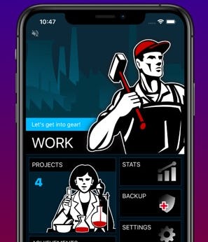 The app offers encouragement, frequent reminders to continue work, boosts your self-confidence with an achievement system, keeps track of your progress, and increases your rank based on how diligent you are about keeping regular work sessions. Slack off and you'll drop down in rank — just like how you'd lose muscle if you took a break from weightlifting.