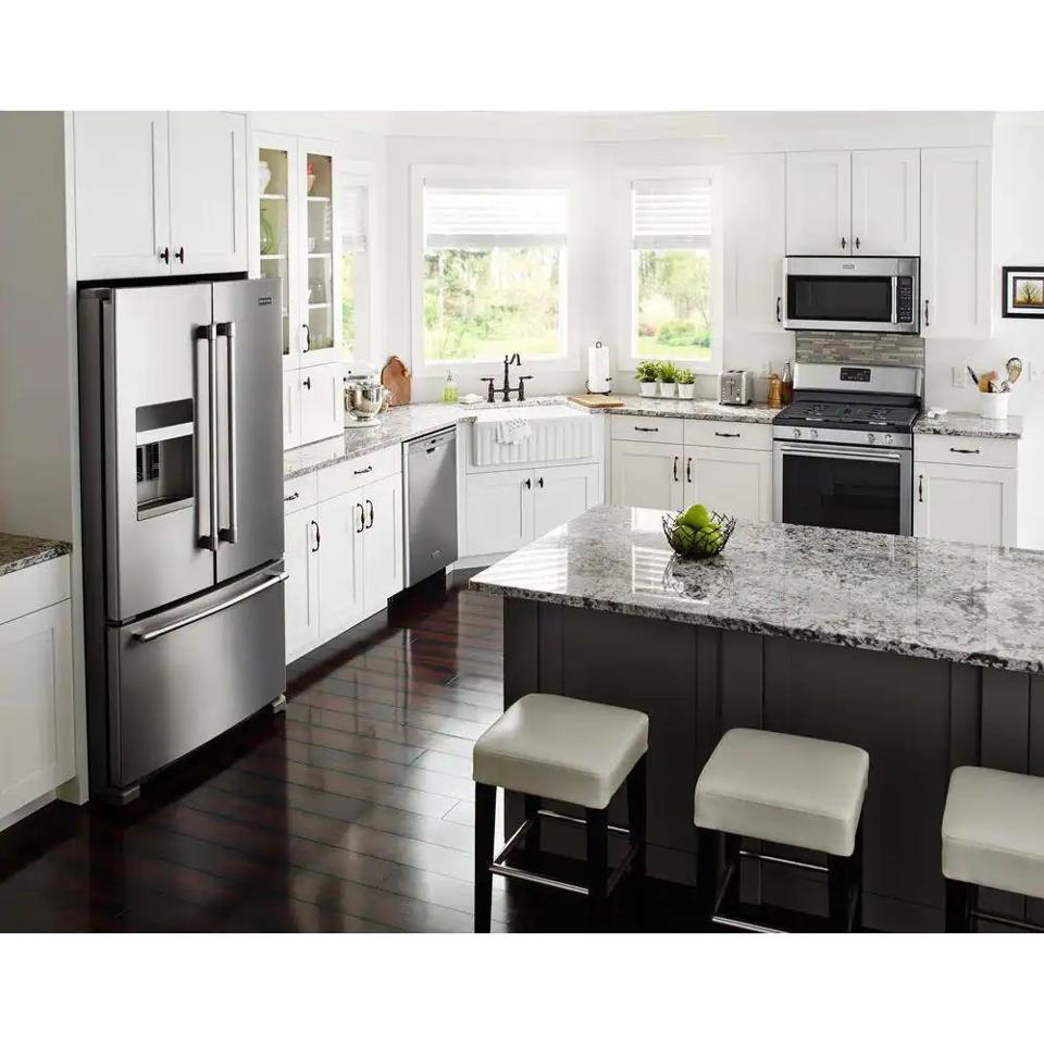 While smart features like Wi-Fi and touchscreens can be a nice luxury, they’re not the most important features of a fridge. Maytag built this 25 cu. ft. refrigerator to check all the most important boxes. It’s available in black or white, but it’s the fingerprint resistant stainless steel where this appliance shines—literally, since most messes clean easily off the finish. And the ice and water dispenser only adds $100 to the price, making it a great value.