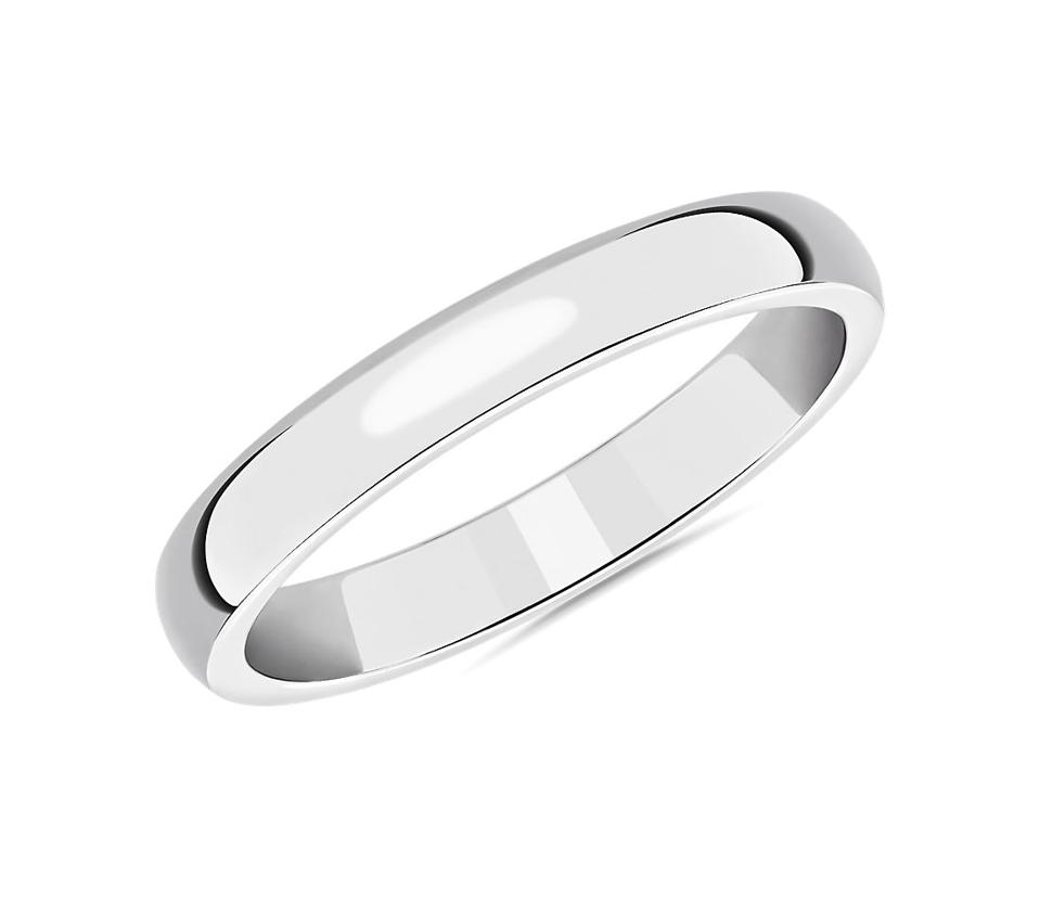 Blue Nile offers a diverse range of high-quality yet pared-down rings and often collaborates with designers such as Zac Posen. With its contoured edges and sleek domed shape, this mid-weight wedding band has a profile that’s comfortable to wear and, thanks to its polished platinum, doesn’t sacrifice on sophistication either.