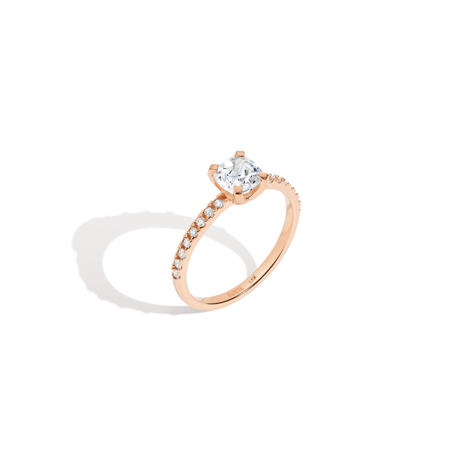 Rose gold rings already stand out for their beautiful blush tone so this style is best with just a hint of diamonds. Aurate has many looks to choose from, including this cushion cut solitaire lab-grown diamond set on a band surrounded by pavé stones.