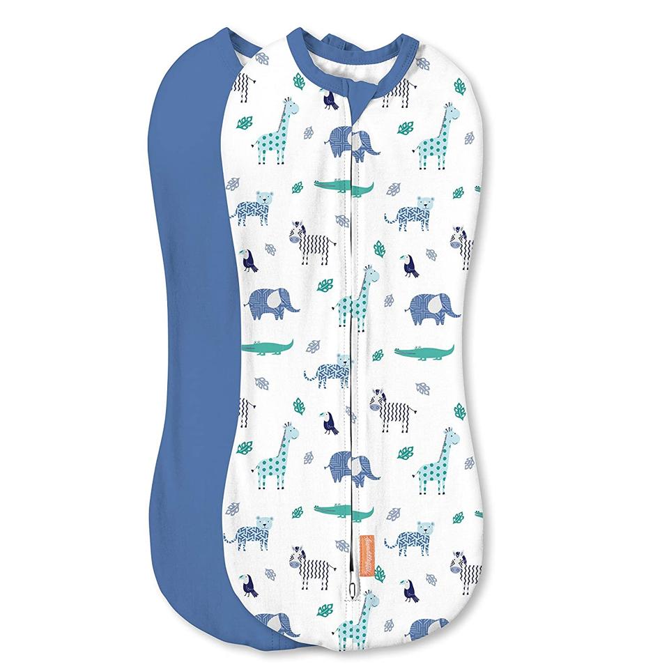 Halo is best known for its sleep sacks, and this swaddle is a parent favorite because of its three-way design. Babies can be swaddled with arms in, hands-to-face, or with one or both arms out, so parents can choose which option works best for their sleeping baby as they grow. The sack design allows for leg movement for proper hip development, has velcro closing flaps to ensure a snug fit and features a two-way zipper with well-designed zipper covers that make diaper changes a breeze. It comes in a huge variety of colors, patterns and fabrics.