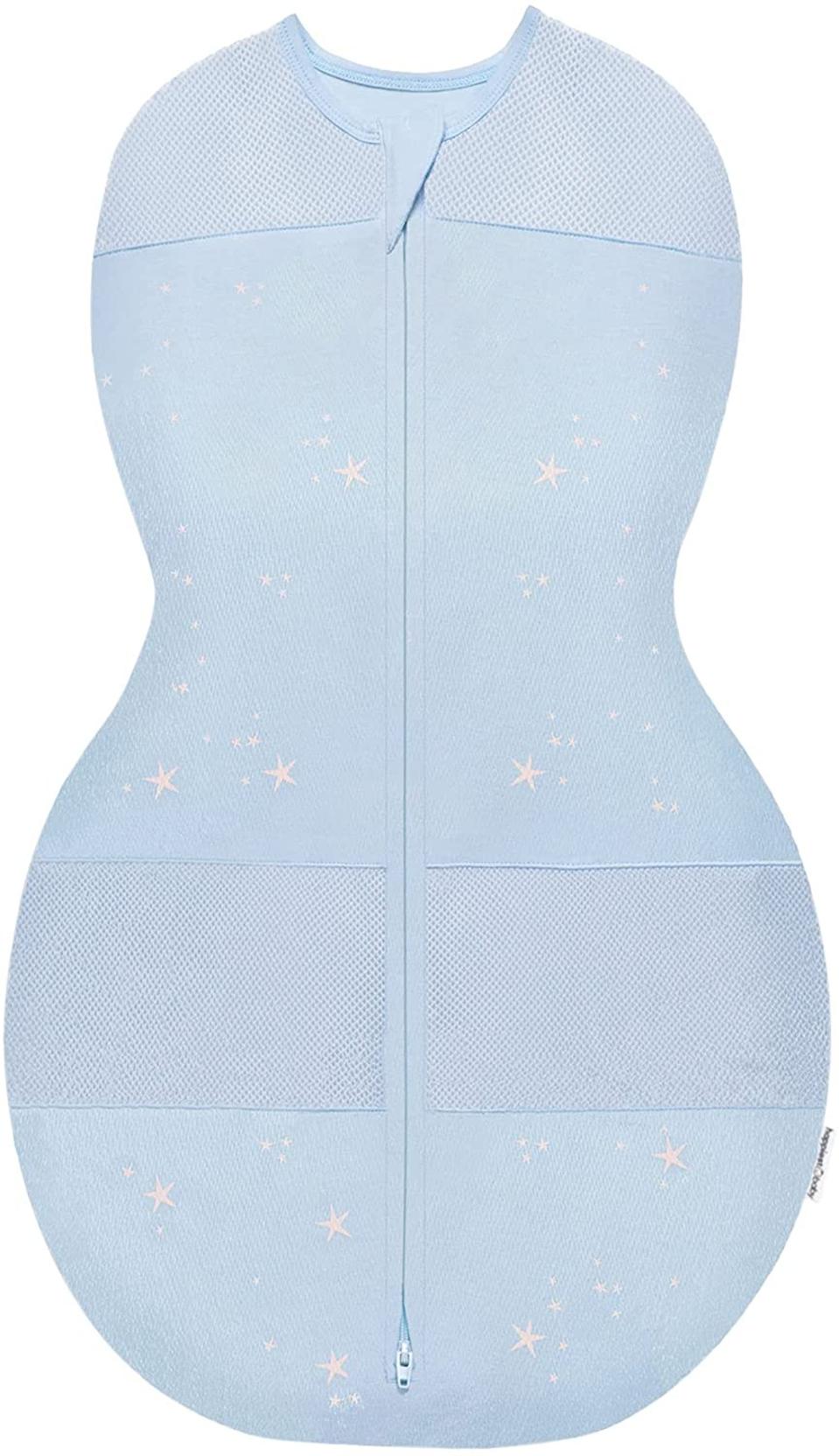 A sound night’s sleep is worth its weight in gold for any parent. This popular zip-up design makes it difficult for newborns to bust out of a snug swaddle and disrupt their sleep. Its unique sleeping pod design has “wings” that allow babies to sleep in an arms-up position, which some prefer, and it also allows for self-soothing while preventing them from scratching their faces. The wider lower half accommodates natural leg flexion, and the two-way zipper makes MOTN diaper changes smooth because you don’t have to unswaddle and in the process wake your sweet, sleeping baby.