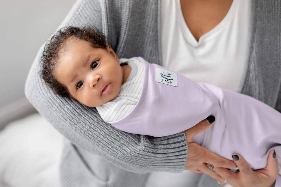 If this reality TV-type scenario sounds familiar, you’ve already tried swaddling a newborn, or another gracious mom has thoughtfully forewarned you. After all, swaddle blankets seem to require a knowledge of geometry, engineering and baby psychology, along with a serious dose of patience. The concept of baby swaddling is quite simple: It involves wrapping a thin blanket snugly around your little one’s body with arms tucked in at the sides securely enough so they can’t wiggle out yet allowing for hip movement, all of which mimics the soothing feeling of being in the womb. It also keeps infants warm without the use of loose blankets, which can be a suffocation hazard in the early stages, and it prevents the Moro, or startle, reflex. By preventing babies from startling, they typically cry less and can sleep more—and the entire household is happier.